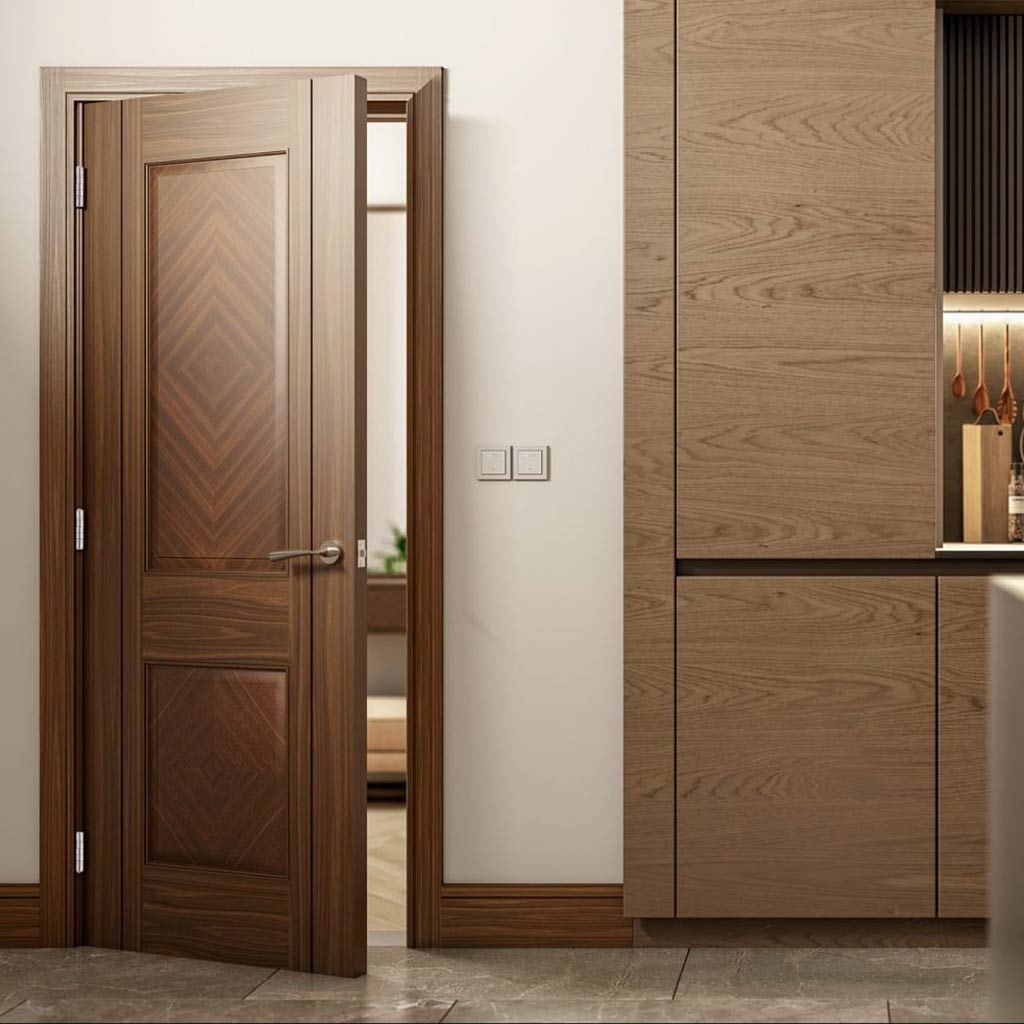 With its sleek, diamond veneer inlays, the Kensington adds a stylish, modern look to this classical design. The strong lines of this North American prefinished walnut door will transform any room, whether classical or contemporary.