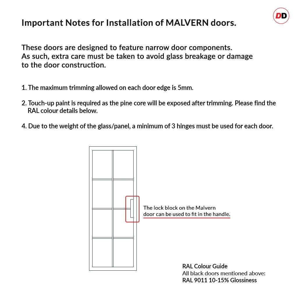We strongly advise that Dry Assembly checks are undertaken prior to installation of the doors, this is to ensure that you have received the correct goods as well as double checking that the goods are fit for purpose and are not damaged or faulty in any way before working upon them.