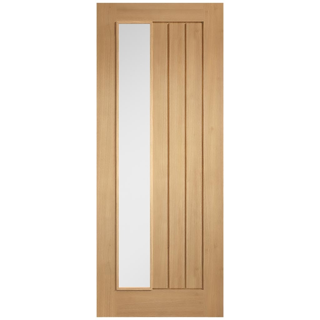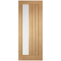 Mexicano Oak Internal Door Pair - Offset Glazed - Frosted Glass - Prefinished