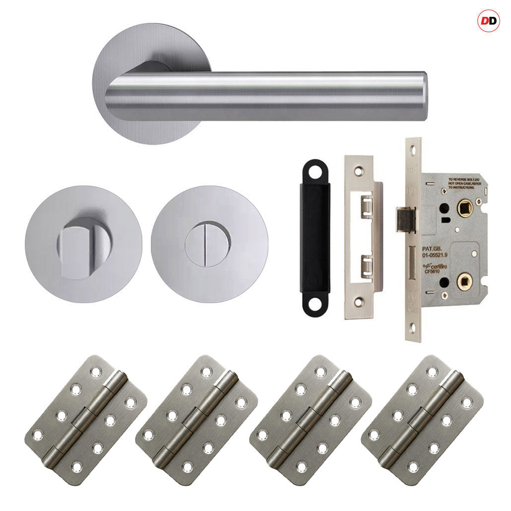 Monroe Door Lever Bathroom Handle Pack - 4 Radius Cornered Hinges - Satin Stainless Steel