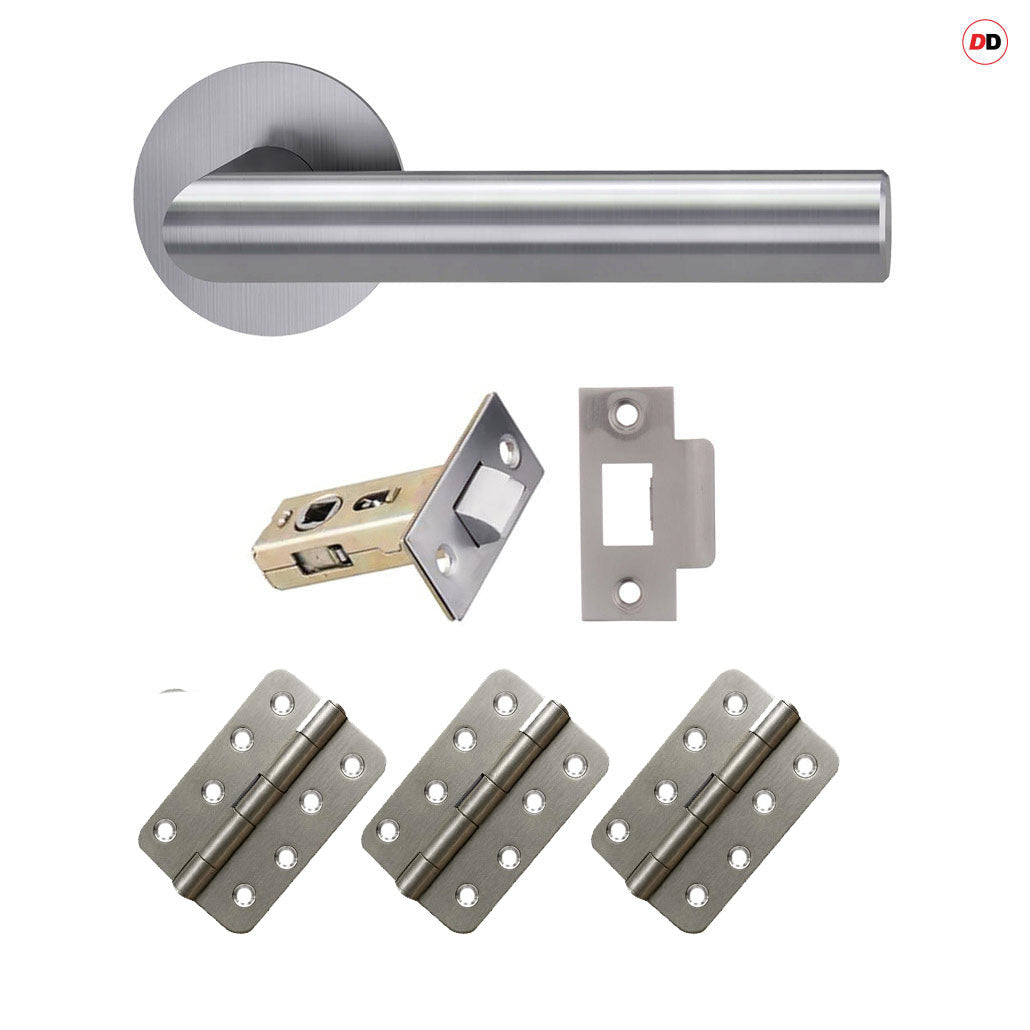 Monroe Door Lever Handle Pack - 3 Radius Cornered Hinges - Satin Stainless Steel