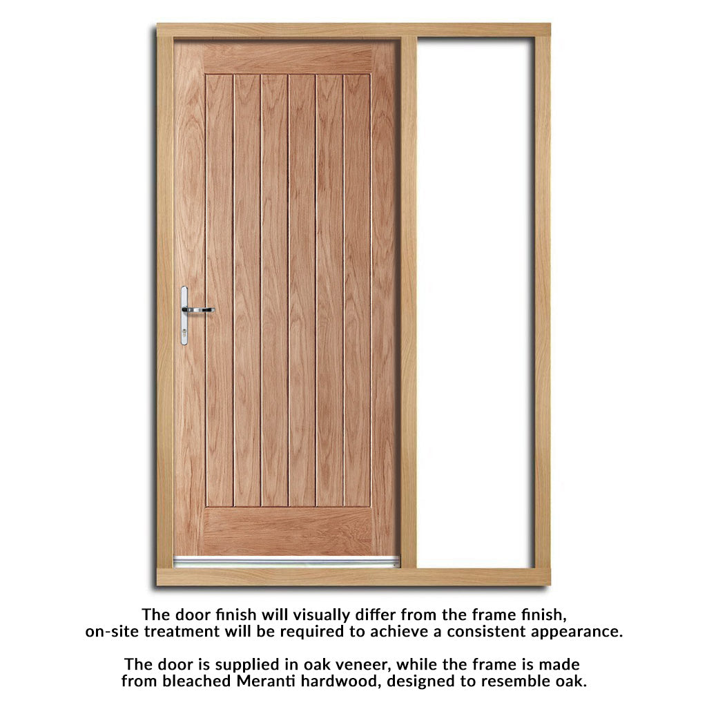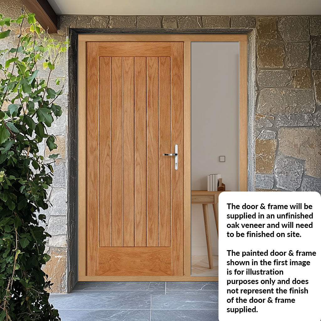 Norfolk Flush Exterior Oak Front Door and Frame Set - One Unglazed Side Screen