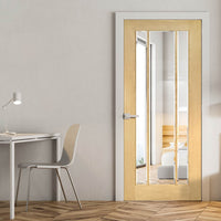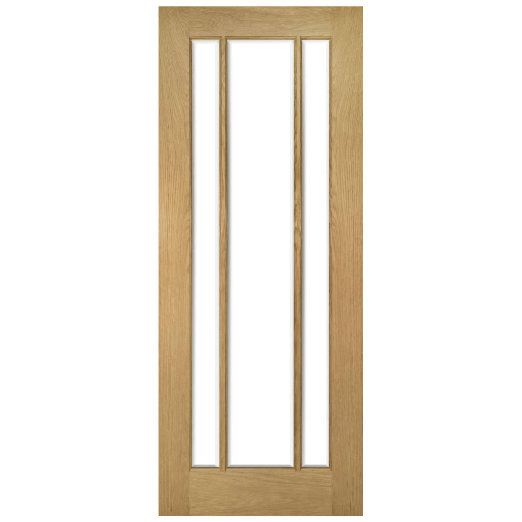Norwich Real American Oak Veneer Internal Door - Clear Bevelled Glass - Unfinished
