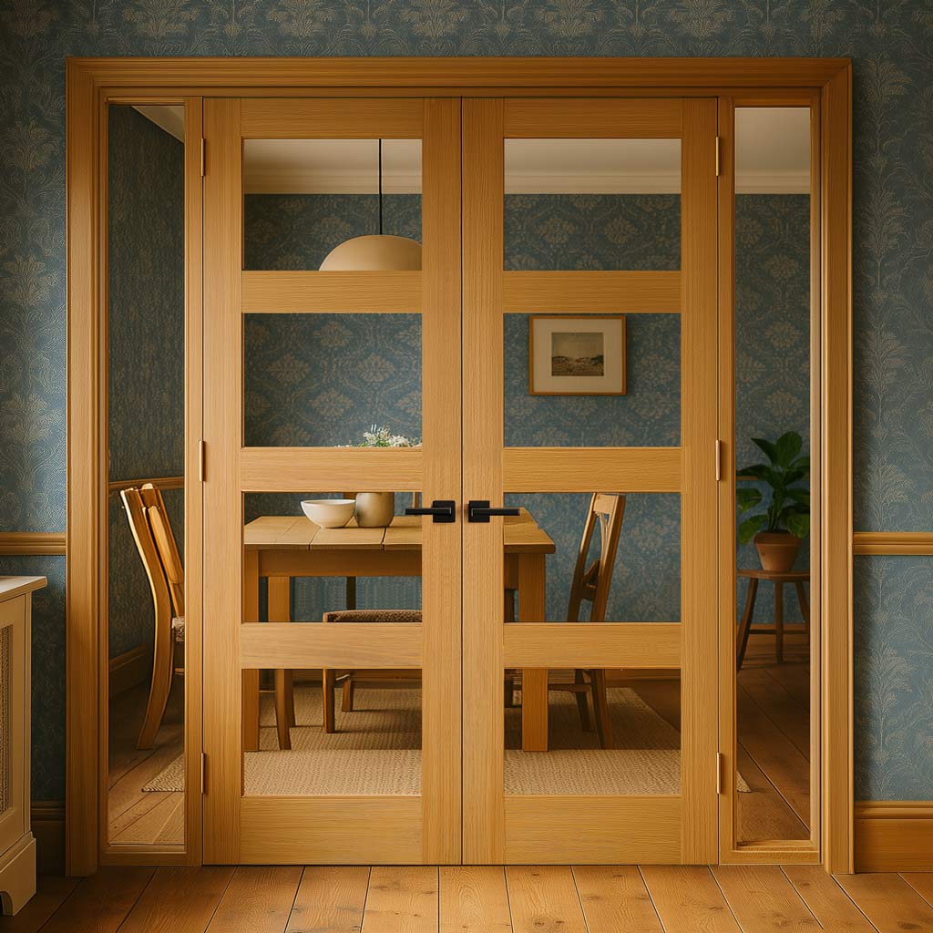 Oak Room Divider - Coventry Shaker Glazed Prefinished Door Pair with Full Glass Side - 2018mm High - Multiple Widths
