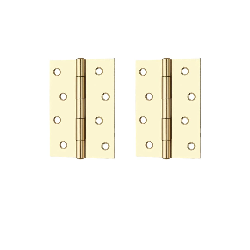 One Pair of Ares Loft Style Polished Gold Finish Square Cornered Hinges 102x67x2mm