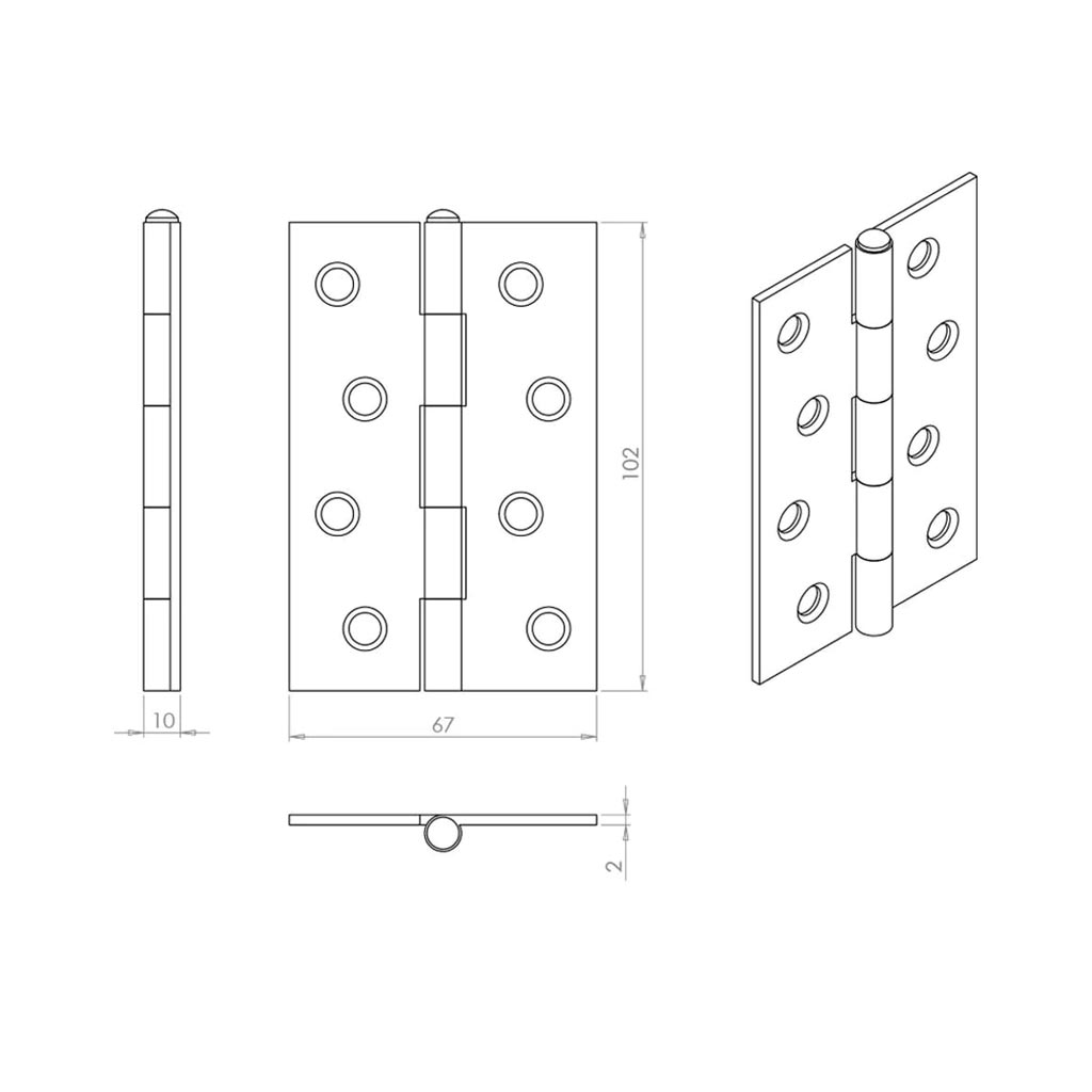- 102mm x 67mm x 2mm.