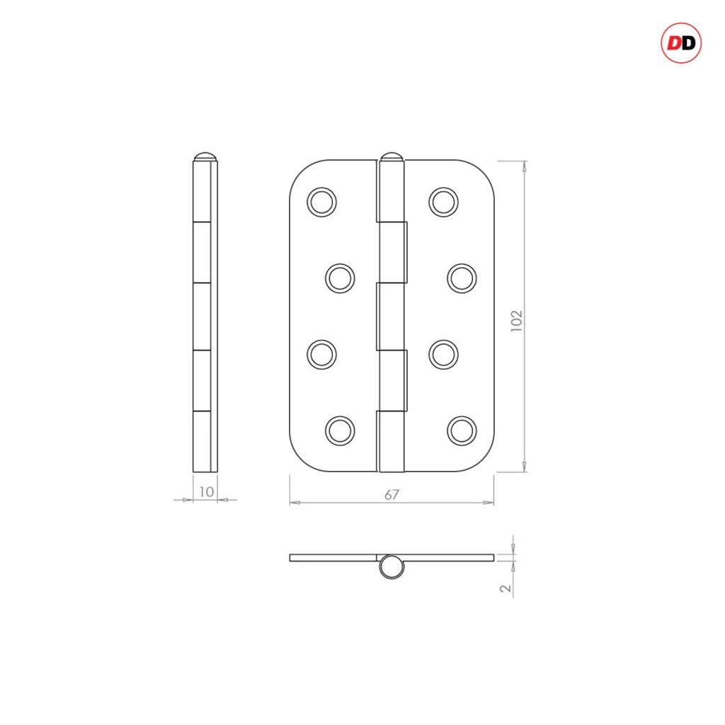- 102mm x 67mm x 2mm.
