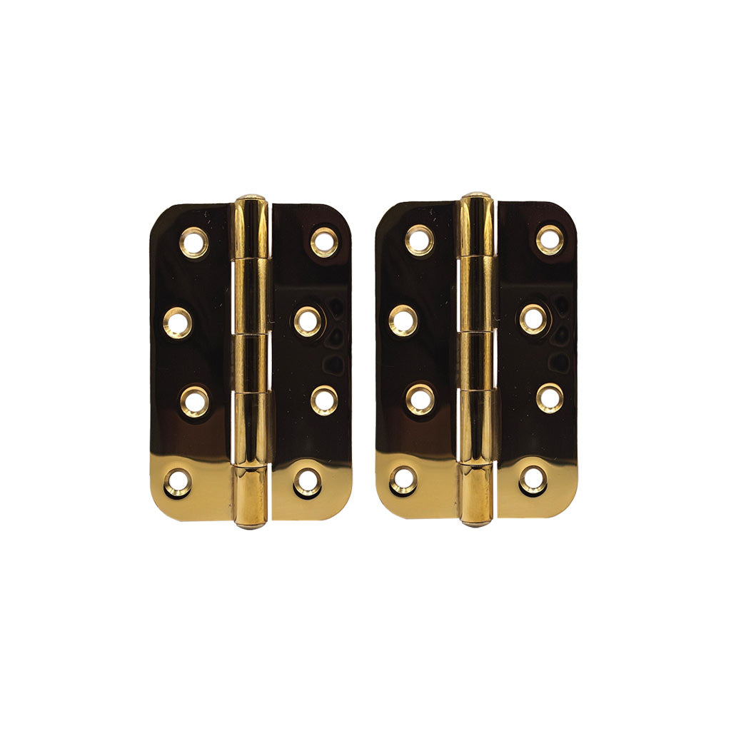 This set includes a pair of high-quality Ares Loft Style Polished Gold Finish Radius Cornered Hinges.