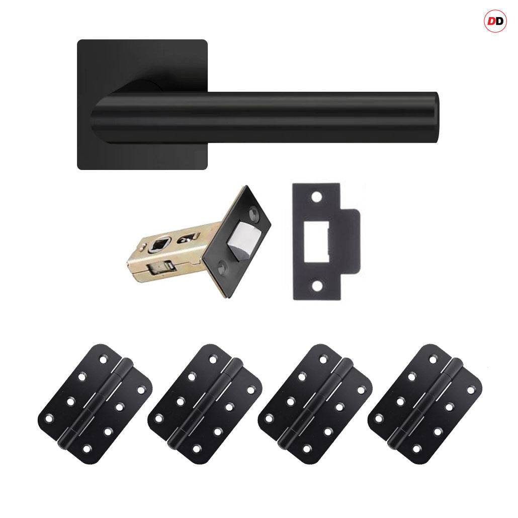 Orlando Door Lever Handle Pack - 4 Radius Cornered Hinges - Matt Black