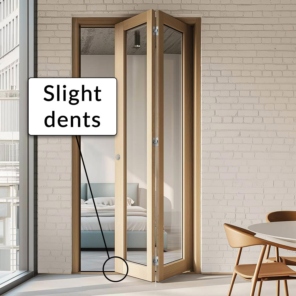 OUTLET - Contemporary Pattern 10 Oak Bifold Internal Door - Clear Glass 1981x762x35mm