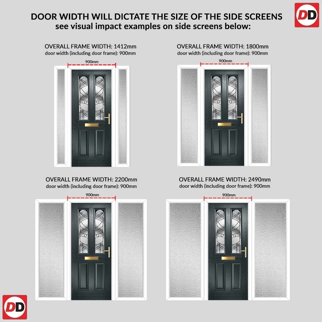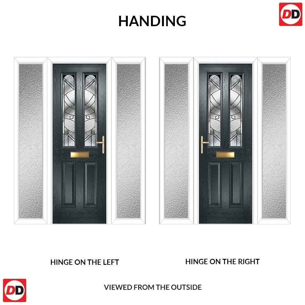 Premium Composite Front Door Set with Two Side Screens - Arnage 2 Abstract Glass - Shown in Anthracite Grey
