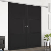 Premium Double Sliding Door & Wall Track - Tribeca 3 Panel Black Painted Door - Prefinished