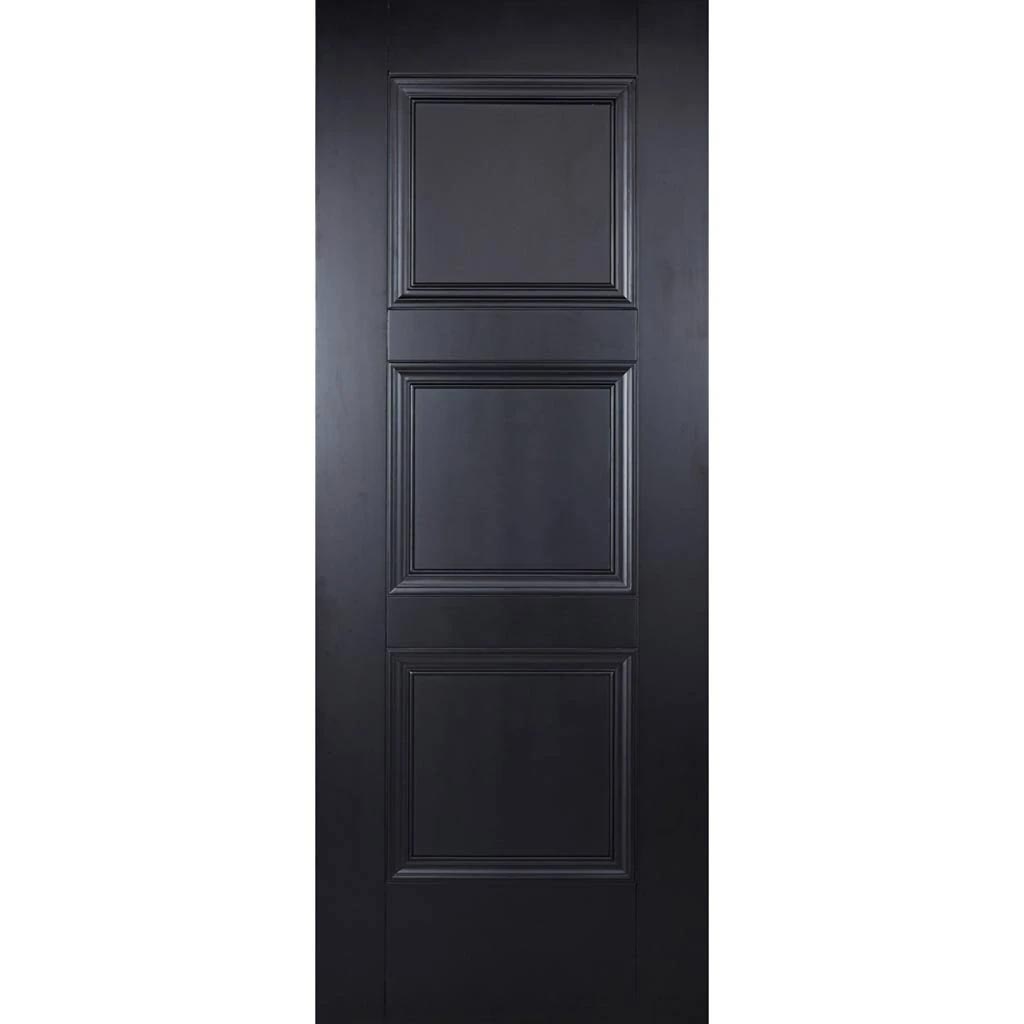 Premium Single Sliding Door & Wall Track - Amsterdam 3 Panel Black Primed Door