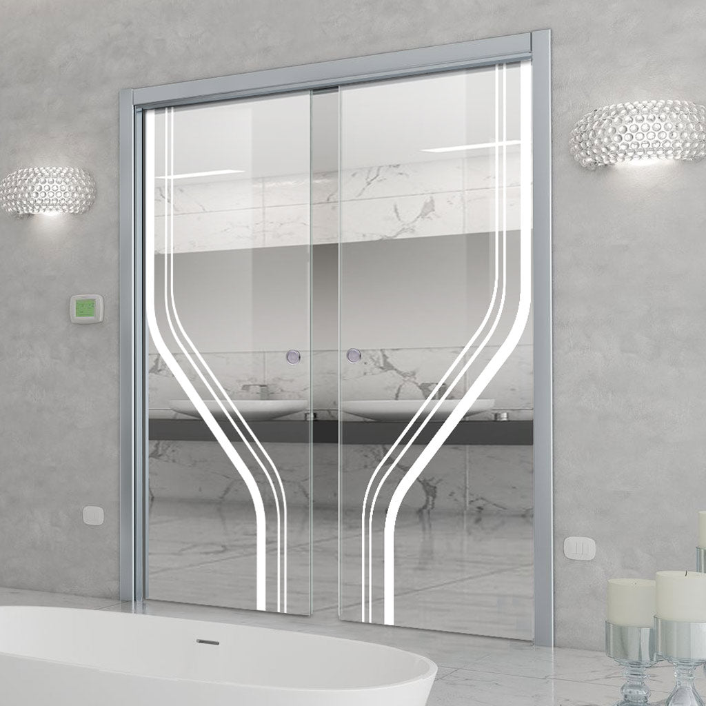 Reston 8mm Clear Glass - Obscure Printed Design - Double Evokit Pocket Door