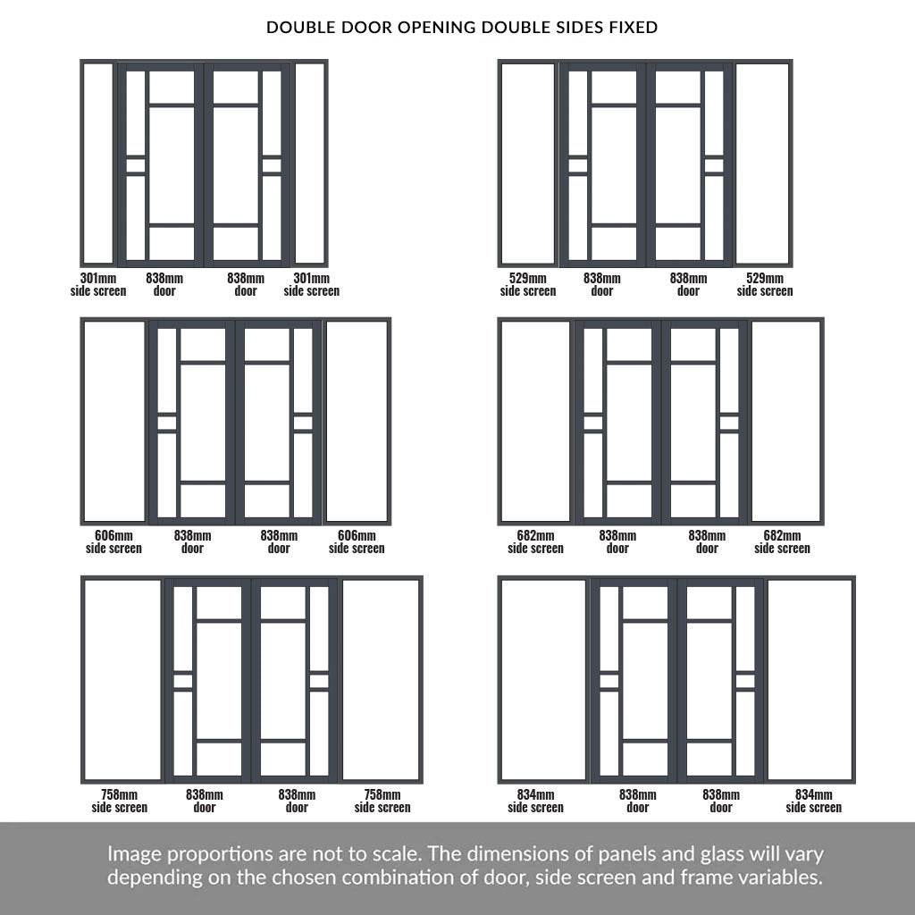 Door position: Double doors are central with side inset screens on the right and on the left.