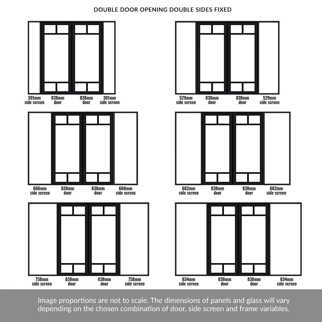 Door position: Double doors are central with side inset screens on the right and on the left.