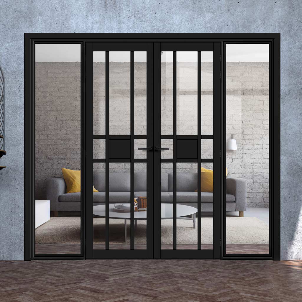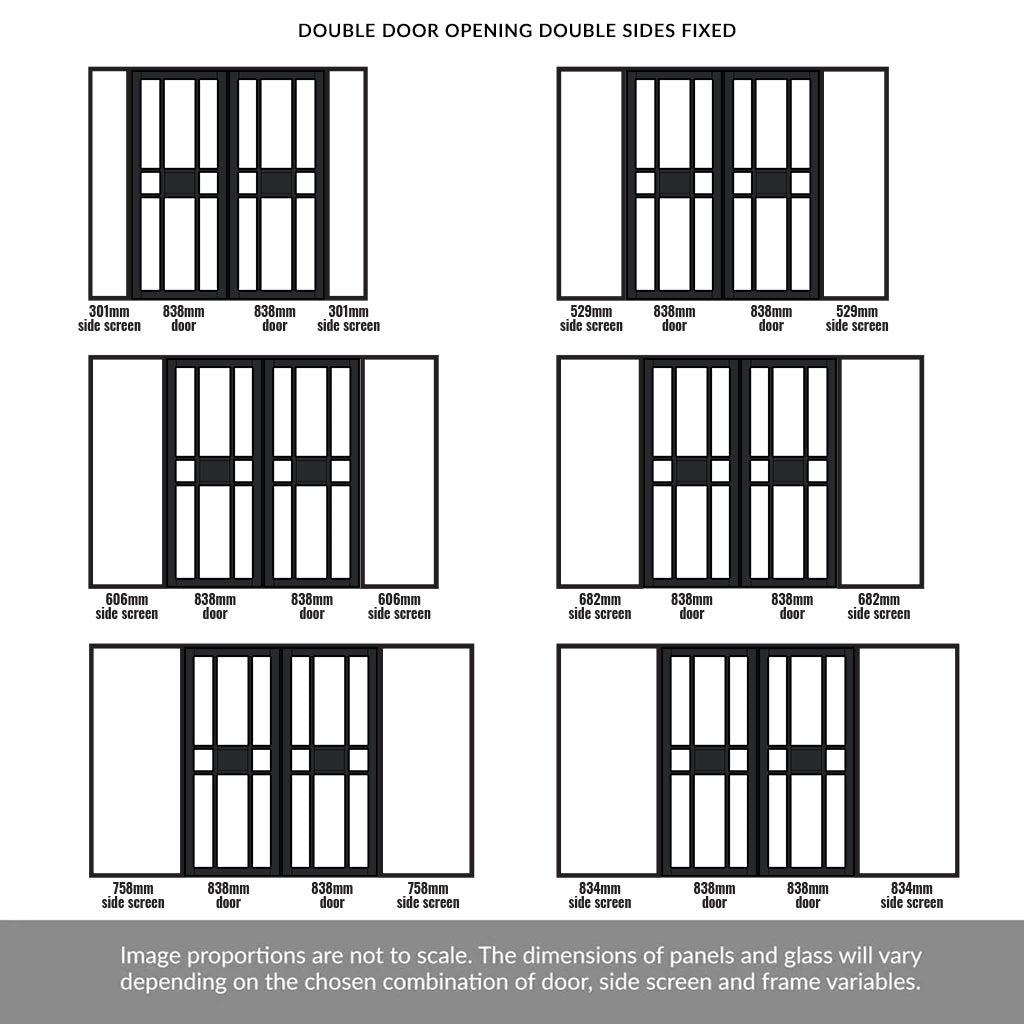 Door position: Double doors are central with side inset screens on the right and on the left.