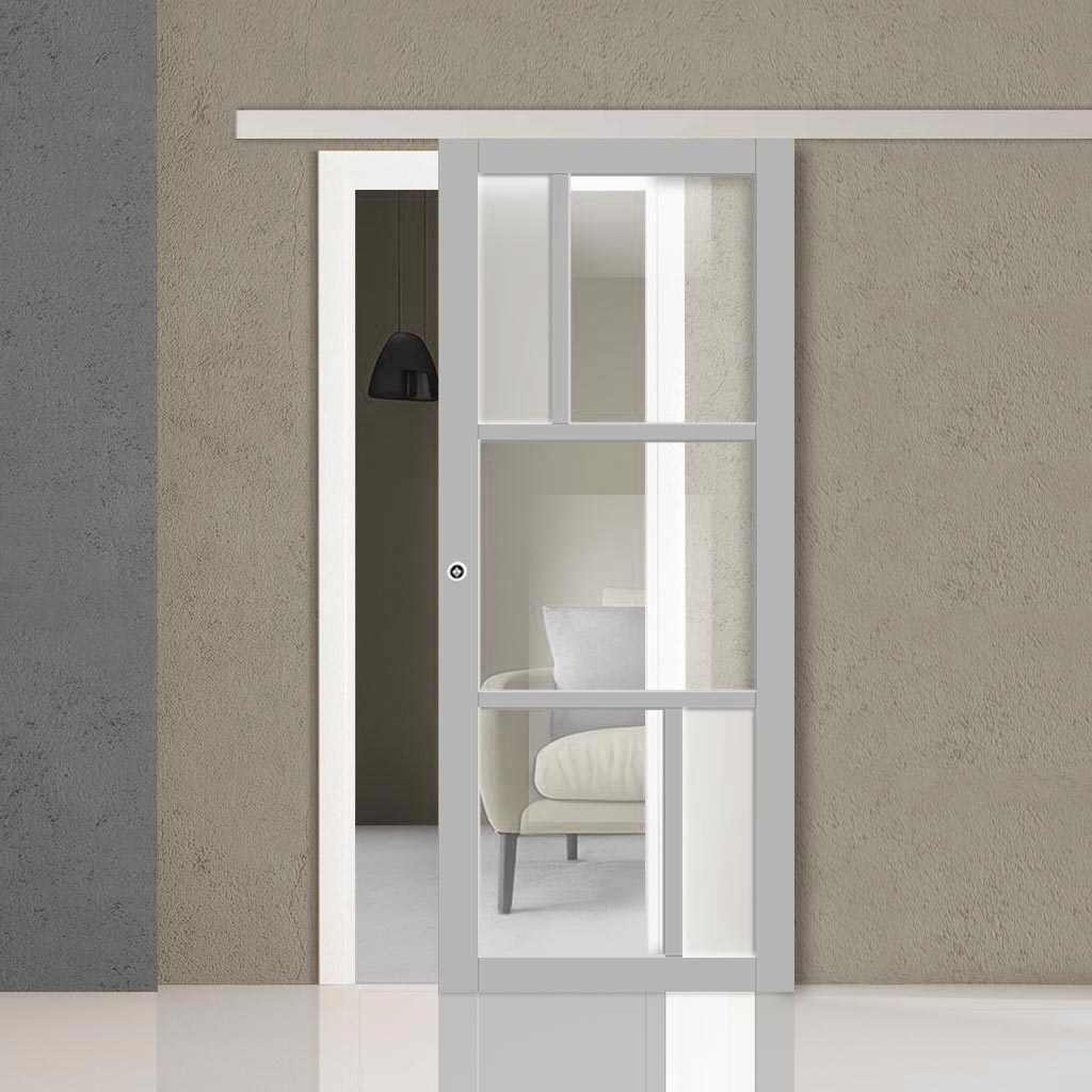 Single Sliding Door & Premium Wall Track - Eco-Urban® Arran 5 Pane Door DD6432G Clear Glass(2 FROSTED PANES) - 6 Colour Options