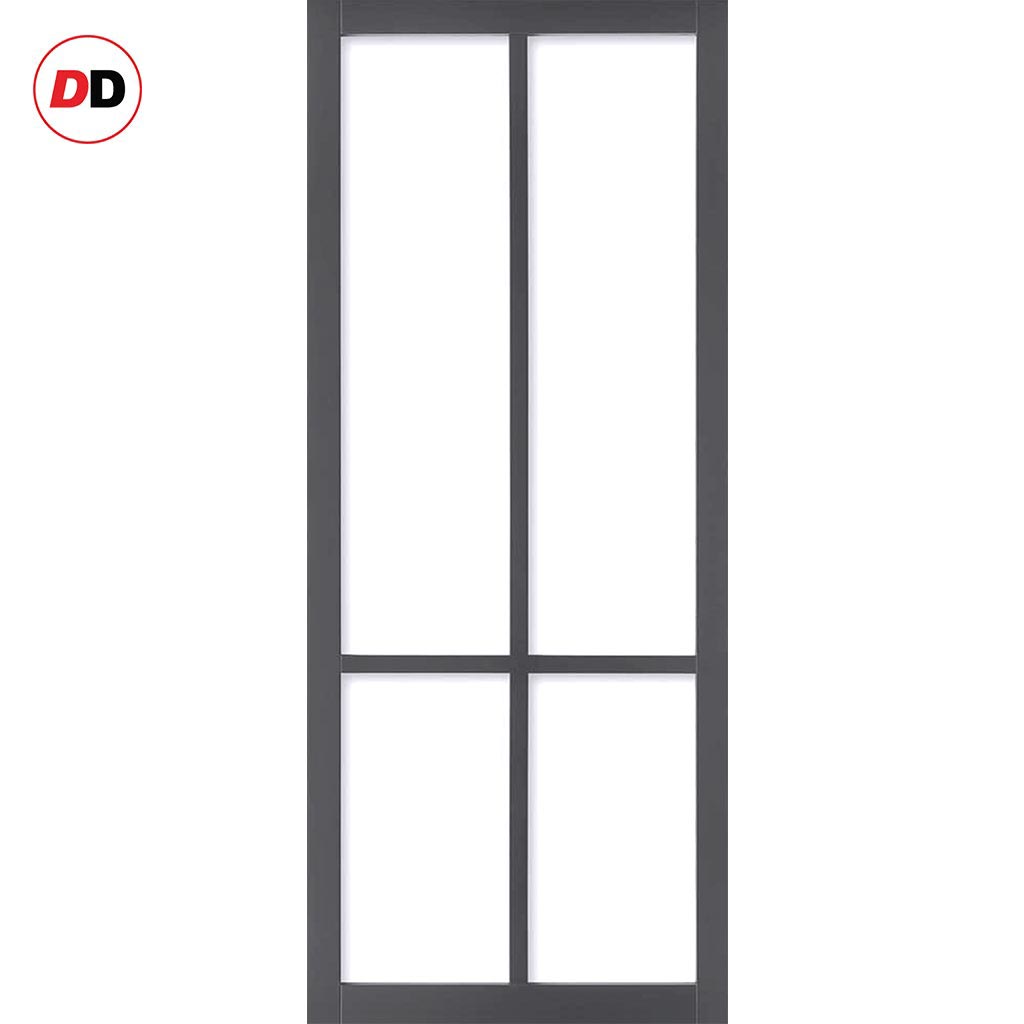 Single Sliding Door & Premium Wall Track - Eco-Urban® Bronx 4 Pane Door DD6315G - Clear Glass - 6 Colour Options