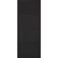 Pass-Easi Three Sliding Doors and Frame Kit - Chelsea 4 Panel Black Painted Door - Prefinished
