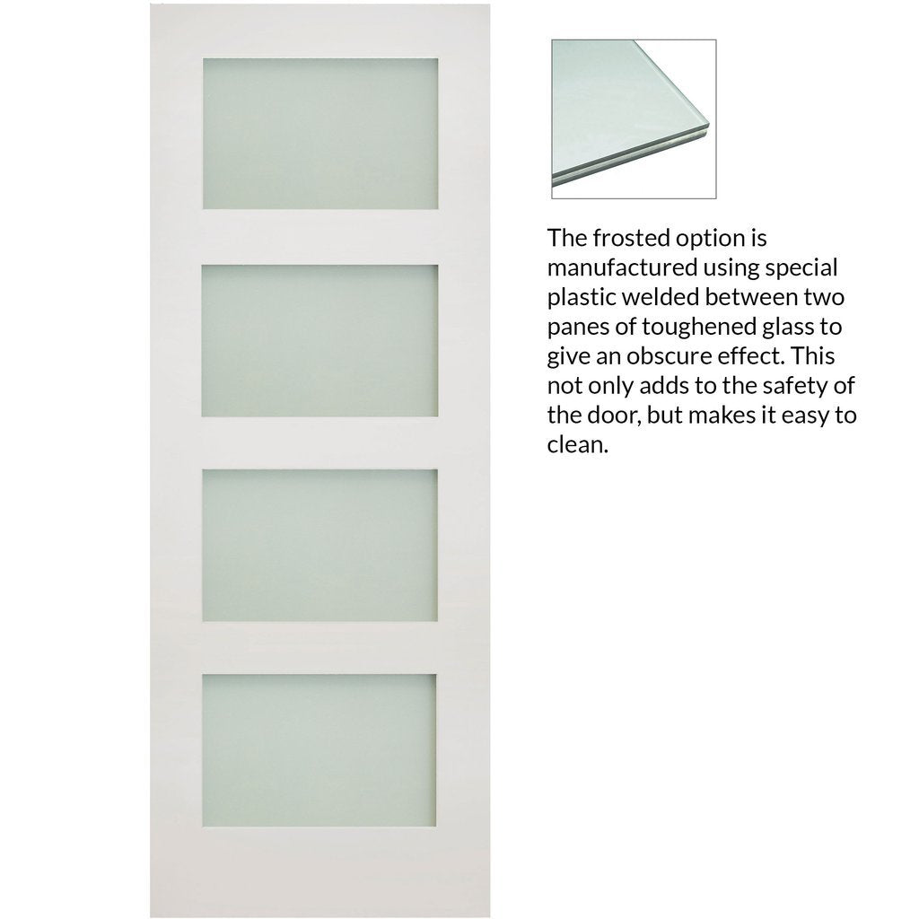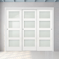 Pass-Easi Three Sliding Doors and Frame Kit - Coventry White Primed Shaker Door - Frosted Glass