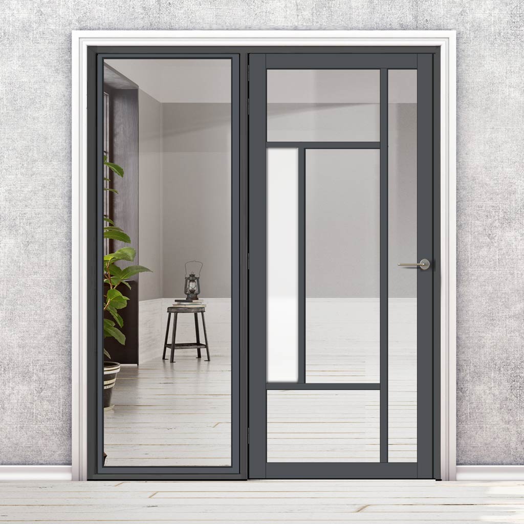 Room Divider - Handmade Eco-Urban® Portobello Door DD6438CF Clear Glass (1 FROSTED PANE) - Premium Primed - Colour & Size Options