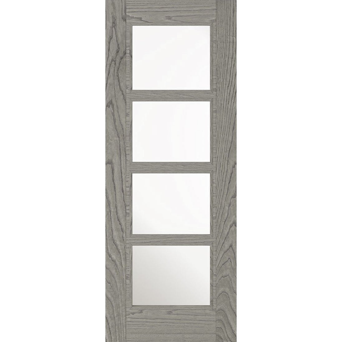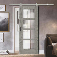 Sirius Tubular Stainless Steel Sliding Track & Vancouver Light Grey Door - Clear Glass - Prefinished