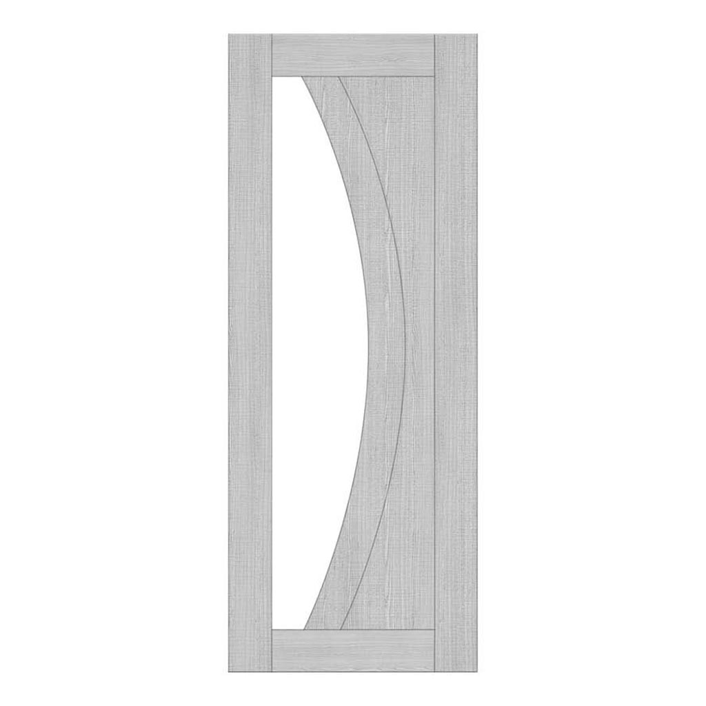 Top Mounted Black Sliding Track & Double Door - Ravello Prefinished Light Grey Ash Door - Clear Glass