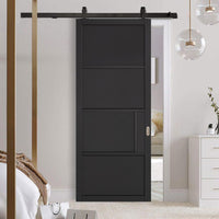 Top Mounted Black Sliding Track & Door - Chelsea 4 Panel Black Painted Door - Prefinished
