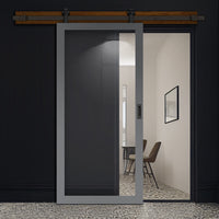 Top Mounted Black Sliding Track & Solid Wood Door - Eco-Urban® Baltimore 1 Pane Solid Wood Door DD6301G - Clear Glass - Stormy Grey Premium Primed