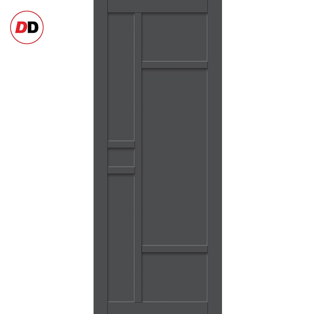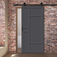 Top Mounted Black Sliding Track & Solid Wood Door - Eco-Urban® Isla 6 Panel Solid Wood Door DD6429 - Stormy Grey Premium Primed