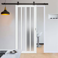 Top Mounted Black Sliding Track & Solid Wood Door - Eco-Urban® Sintra 4 Pane Solid Wood Door DD6428SG Frosted Glass - Cloud White Premium Primed