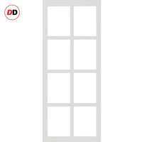 Top Mounted Black Sliding Track & Solid Wood Double Doors - Eco-Urban® Perth 8 Pane Doors DD6318SG - Frosted Glass - Cloud White Premium Primed
