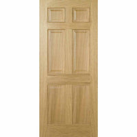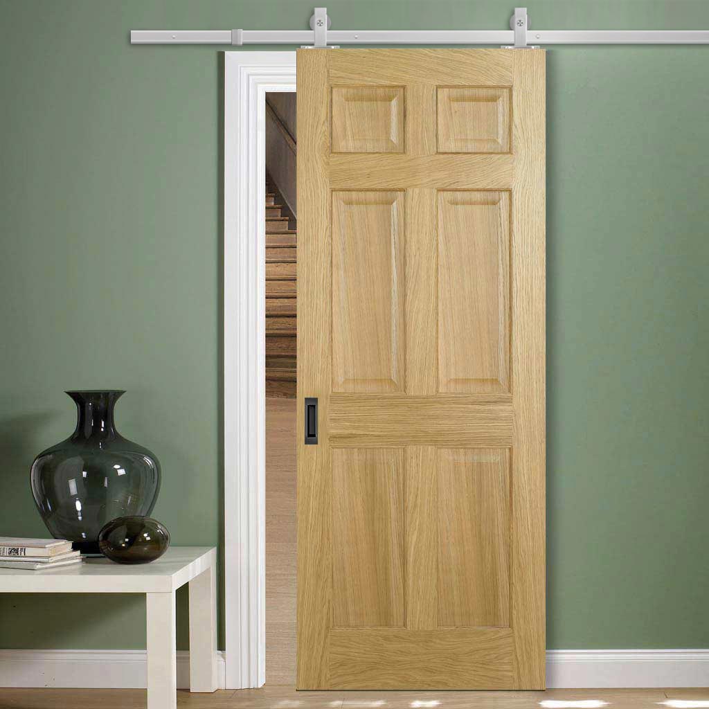 Top Mounted Stainless Steel Sliding Track & Door - Regency 6 Panel Oak Door - Prefinished