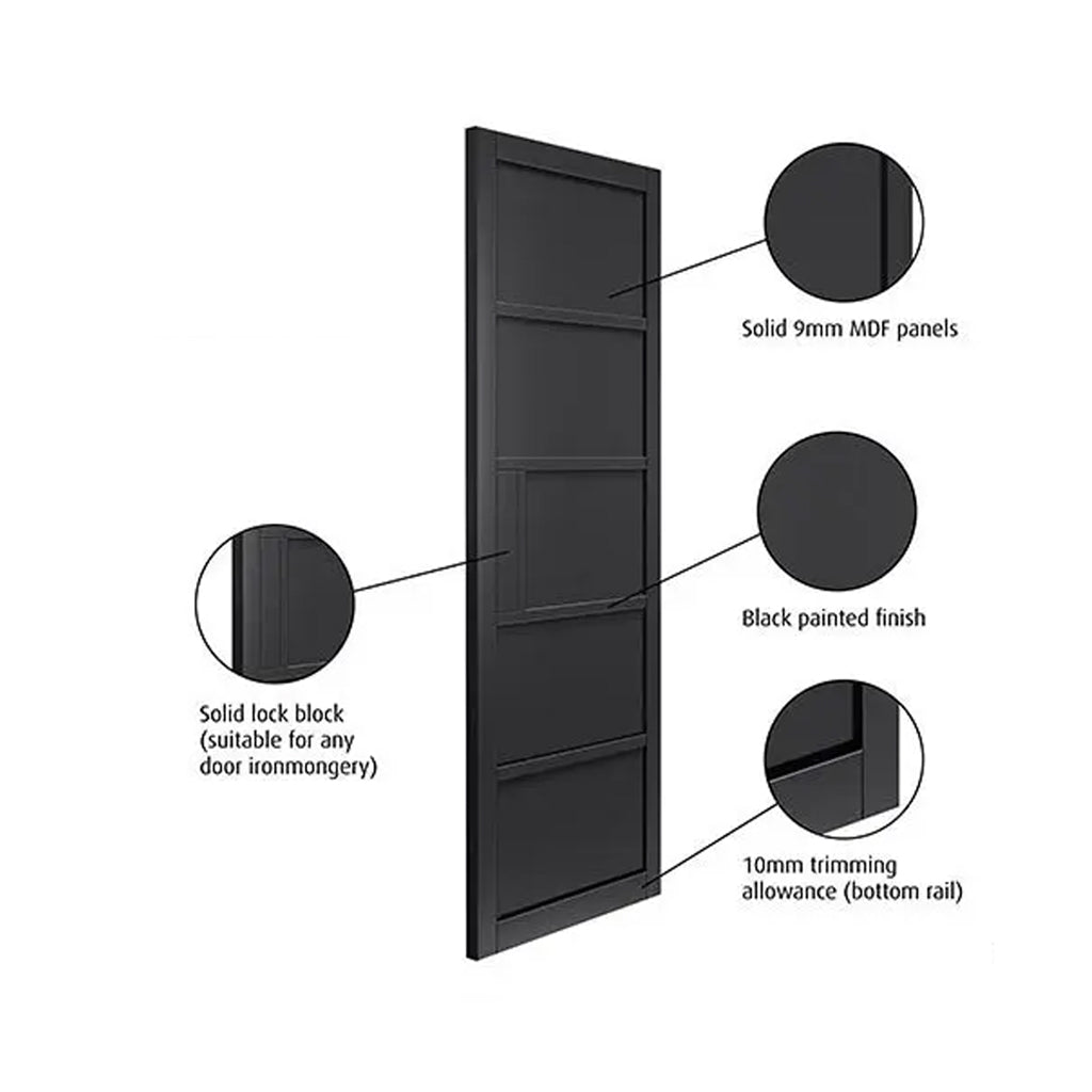 Top Mounted Stainless Steel Sliding Track & Double Door - Industrial Metro Black Panel Internal Door - Prefinished