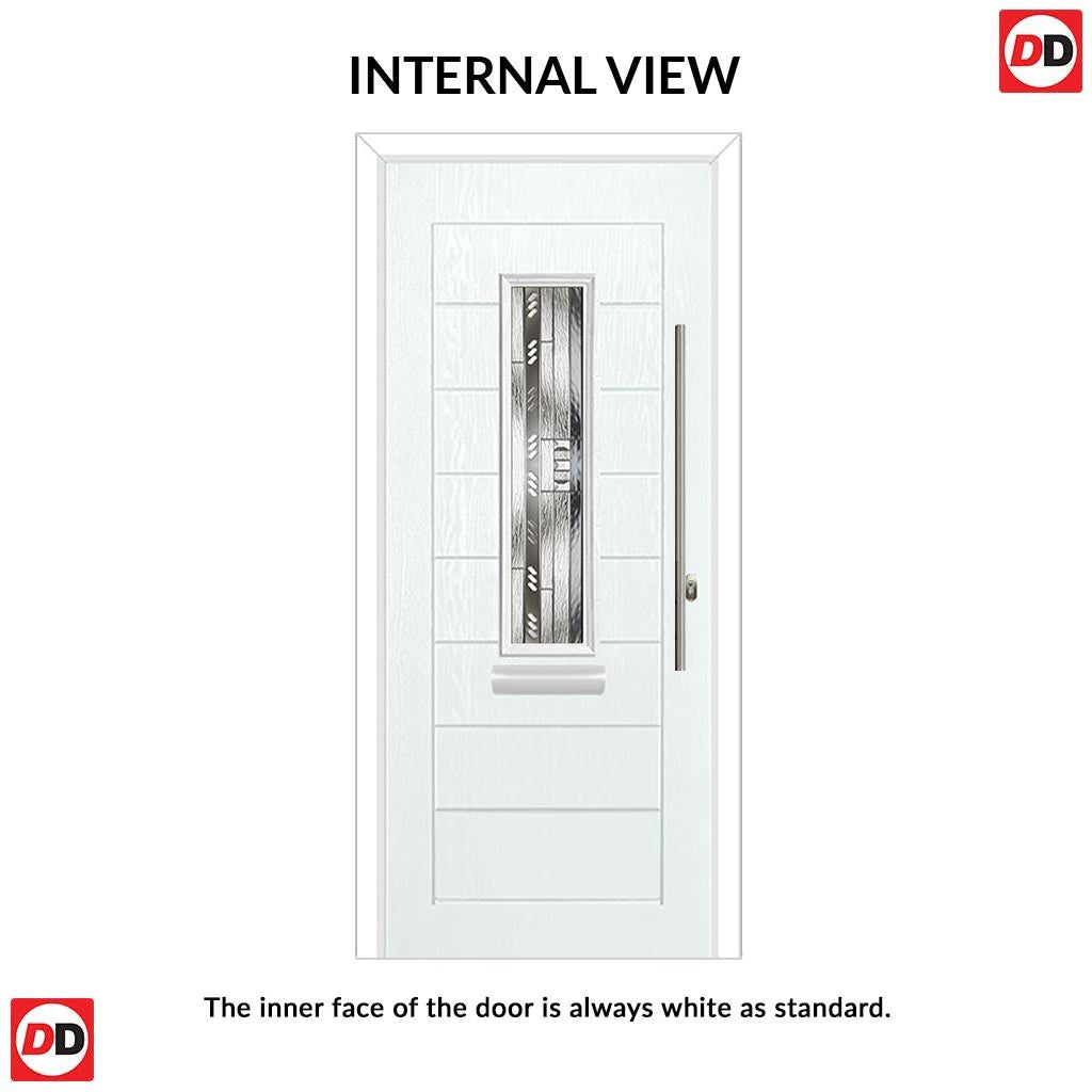Note: For external prehung composite doors with glass. All glazed doors will have an obscure Stippolyte glass on the inside for privacy but could be changed to clear, costs may vary.