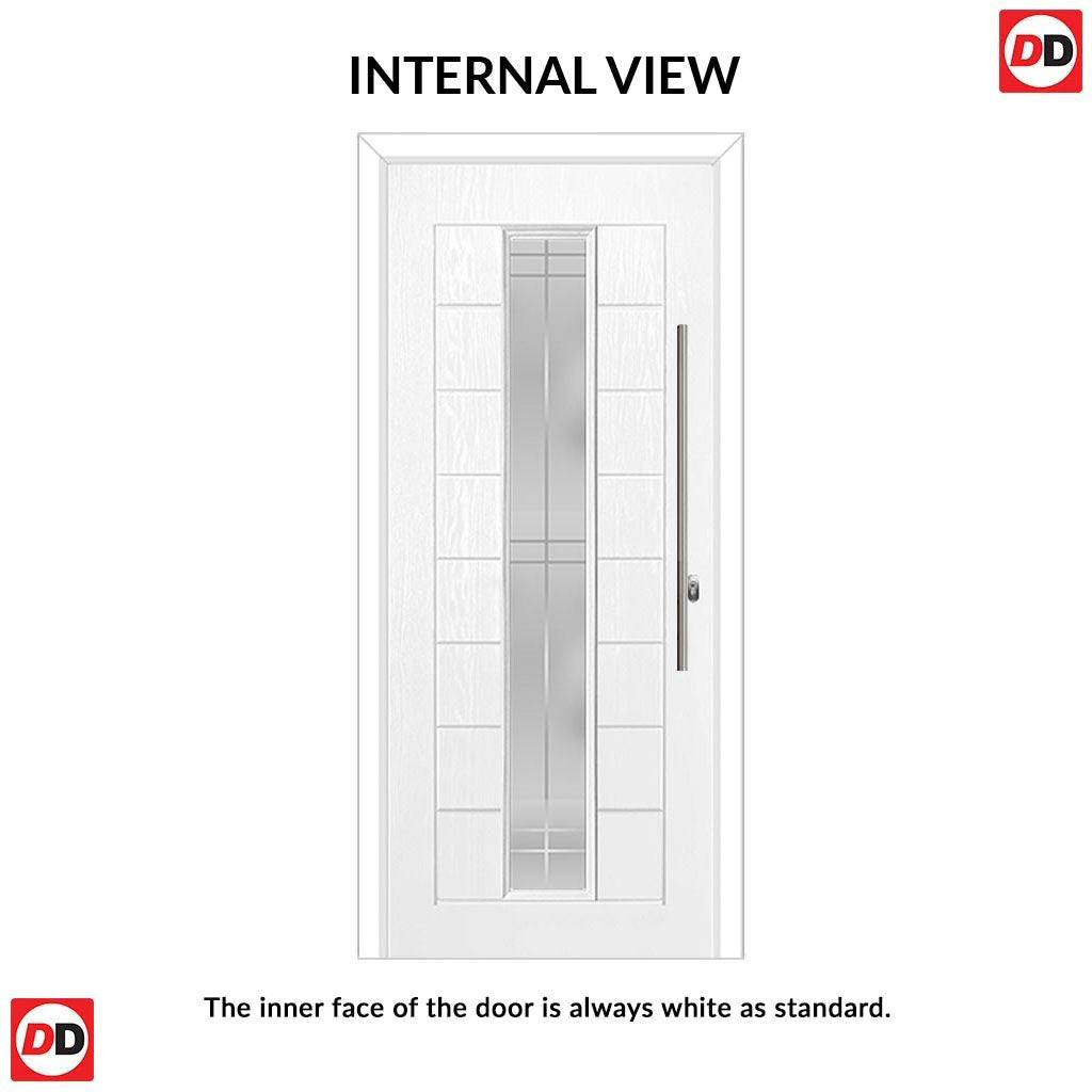 Note: For external prehung composite doors with glass. All glazed doors will have an obscure Stippolyte glass on the inside for privacy but could be changed to clear, costs may vary.