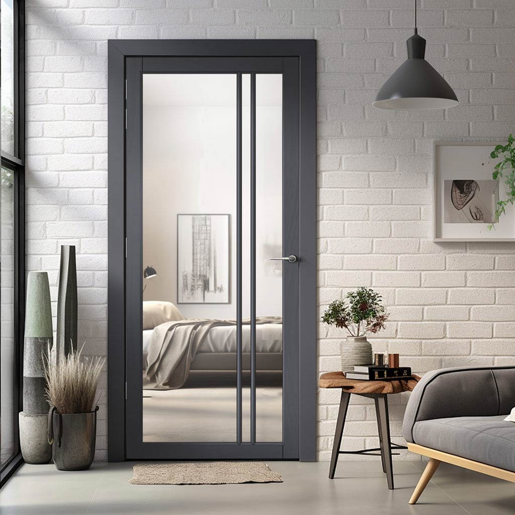 Milano Solid Wood Internal Door UK Made DD0101C Clear Glass - 7 Colour Options Premium Primed - Urban Lite® Bespoke Sizes