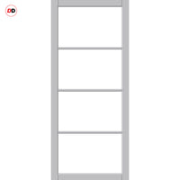 Florence Solid Wood Internal Door Pair UK Made DD0114C Clear Glass - Mist Grey Premium Primed - Urban Lite® Bespoke Sizes