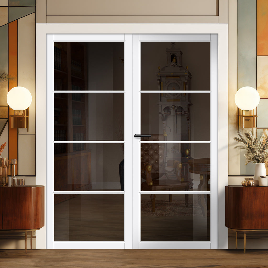 Florence Solid Wood Internal Door Pair UK Made DD0114T Tinted Glass - Cloud White Premium Primed - Urban Lite® Bespoke Sizes