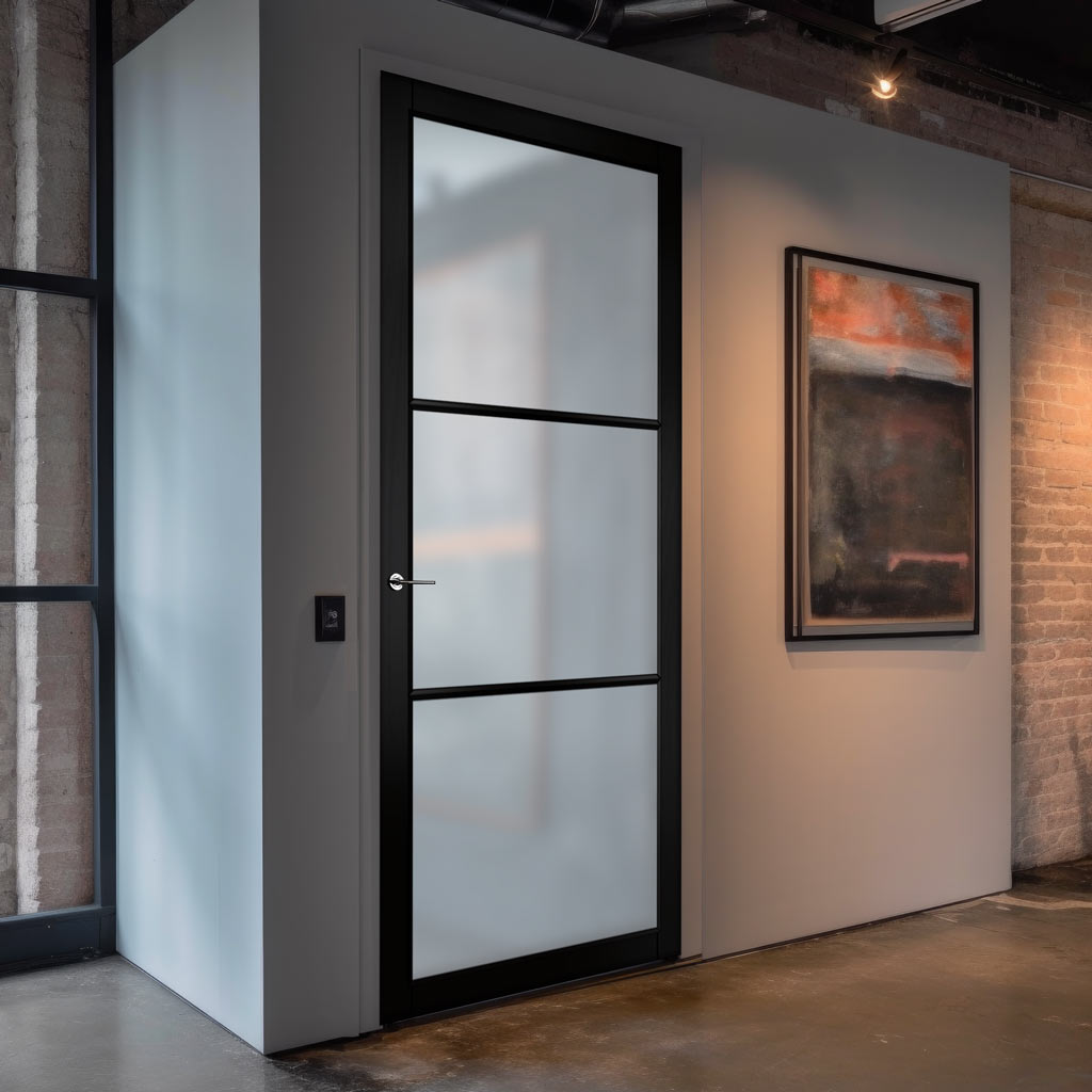 Iretta Solid Wood Internal Door UK Made DD0115F Frosted Glass - 7 Colour Options Premium Primed - Urban Lite® Bespoke Sizes
