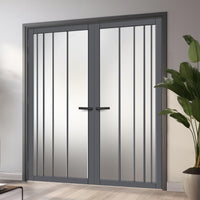 Simona Solid Wood Internal Door Pair UK Made DD0105F Frosted Glass - Stormy Grey Premium Primed - Urban Lite® Bespoke Sizes