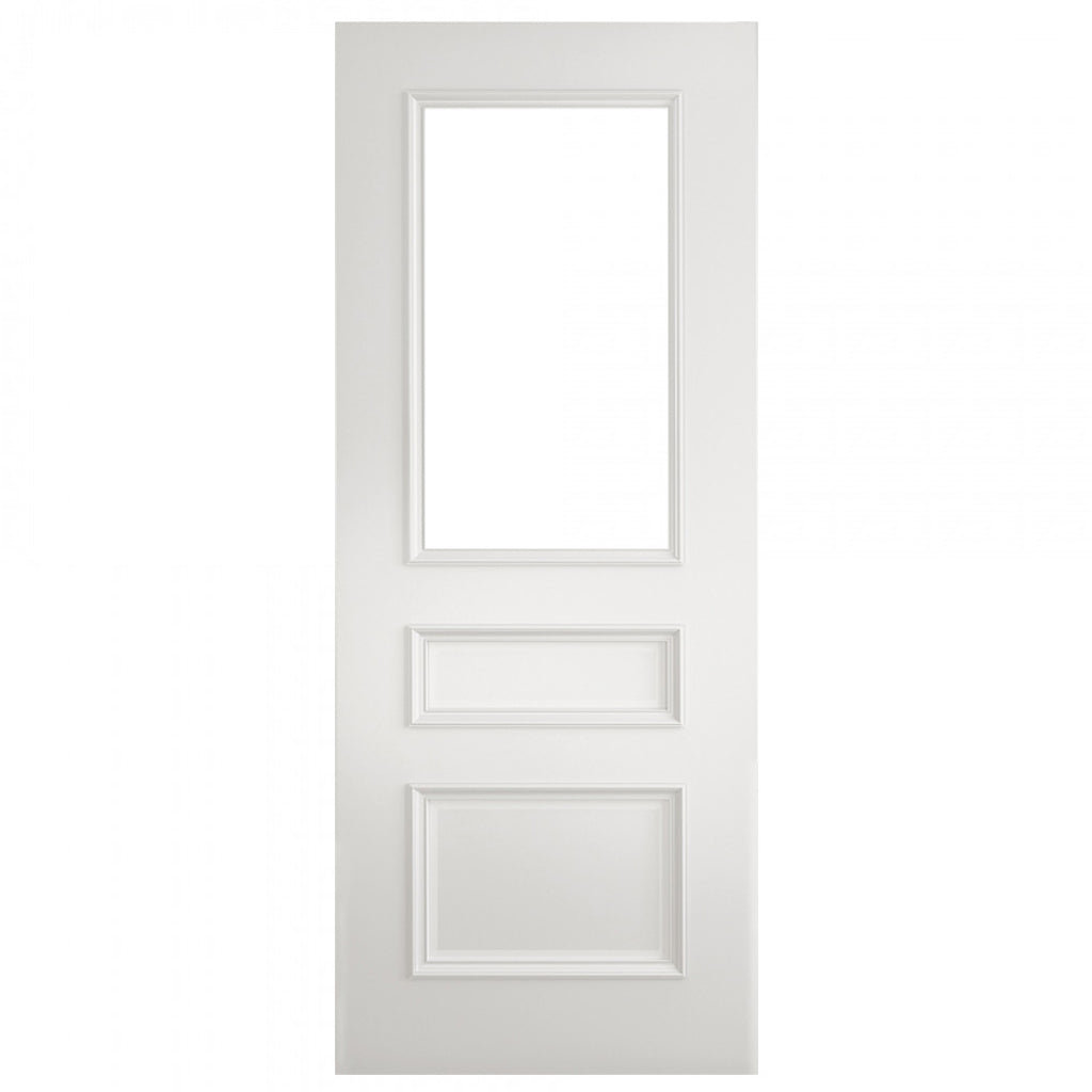 Windsor White Primed Internal Door Pair - Clear Bevelled Glass